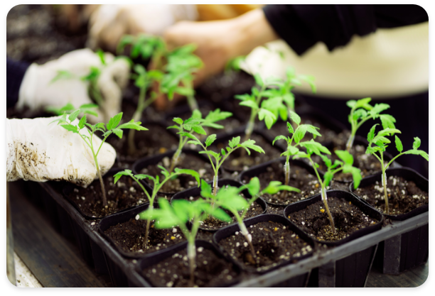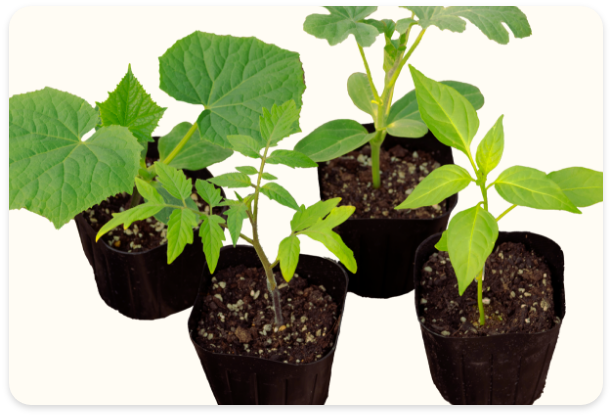 熟練のスタッフによる手灌水と、適度なスペーシングにより、しっかりと引き締まった苗に仕立てています。二次育苗の手間がかからず、お届けした後すぐに定植することができます。